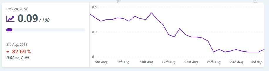 When our team first analyzed the situation we decided to focus on building up the trust and authority of websites that were affected. Below you can see the large drop the site we were focusing on saw in August. Although the update officially happened in the first week of August it took a few more days for the site to really see the full affect of it.